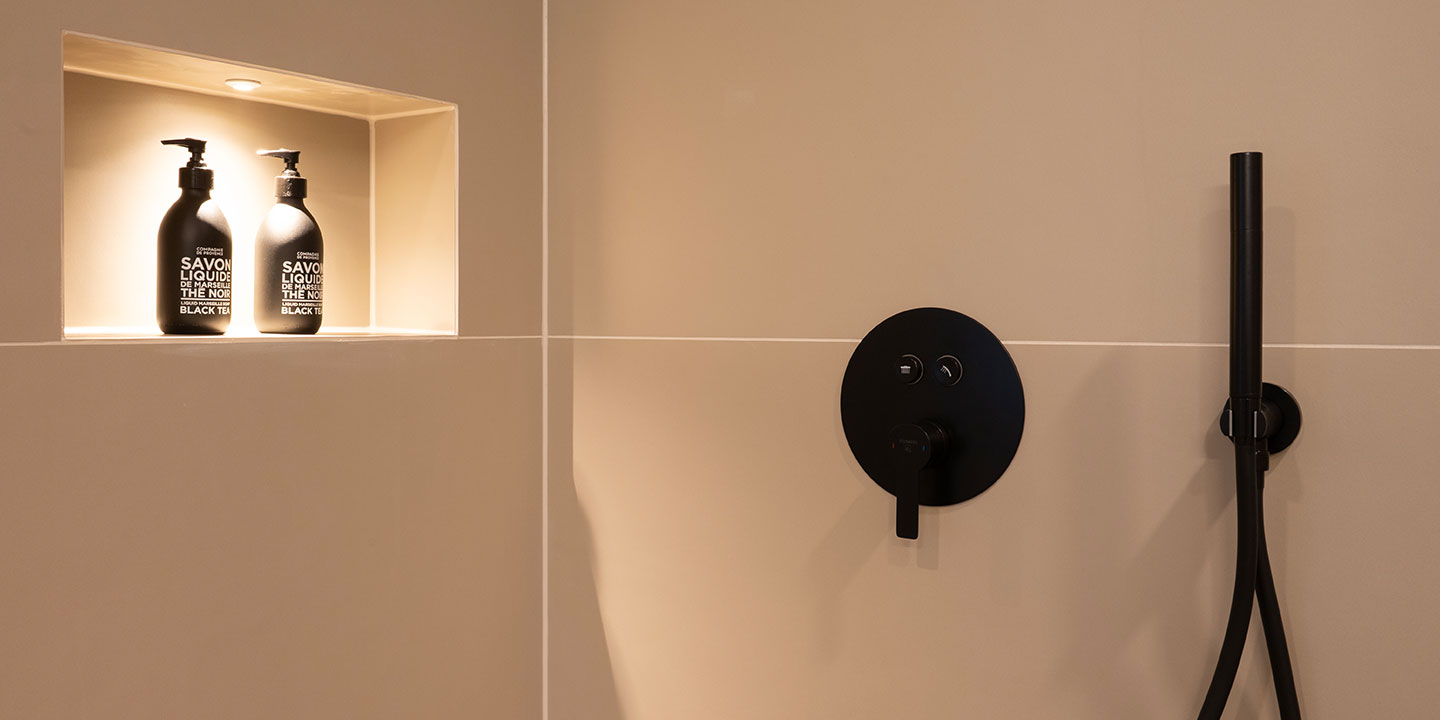 Die Neuordnung des Grundrisses sowie die Erweiterung auf knapp 10 qm ermöglichen eine klare Zonierung und verbesserte Bewegungsabläufe. Die Sanitärobjekte wurden neu positioniert und gestalterisch harmonisch in das Gesamtkonzept integriert.